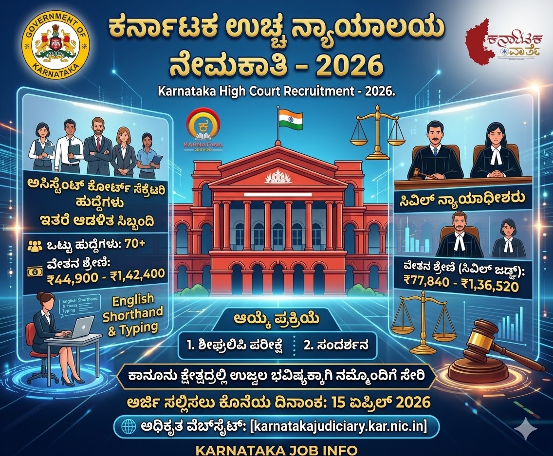 ಕರ್ನಾಟಕ ಹೈಕೋರ್ಟ್ ನೇಮಕಾತಿ 2026: ಉದ್ಯೋಗದ ಸಂಪೂರ್ಣ ವಿವರಣೆ.